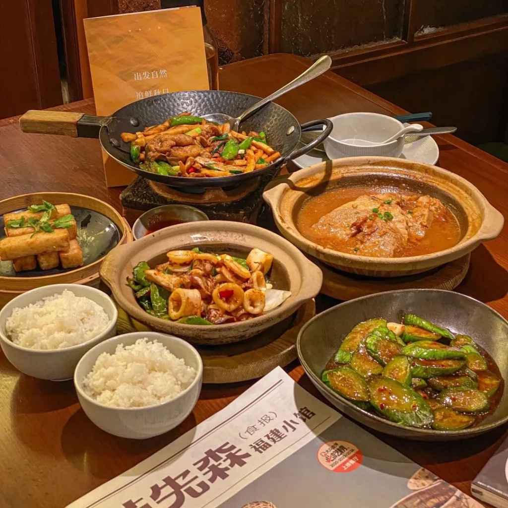 Puxian cuisine is known for its rustic charm, featuring dishes like rice noodles and stews.