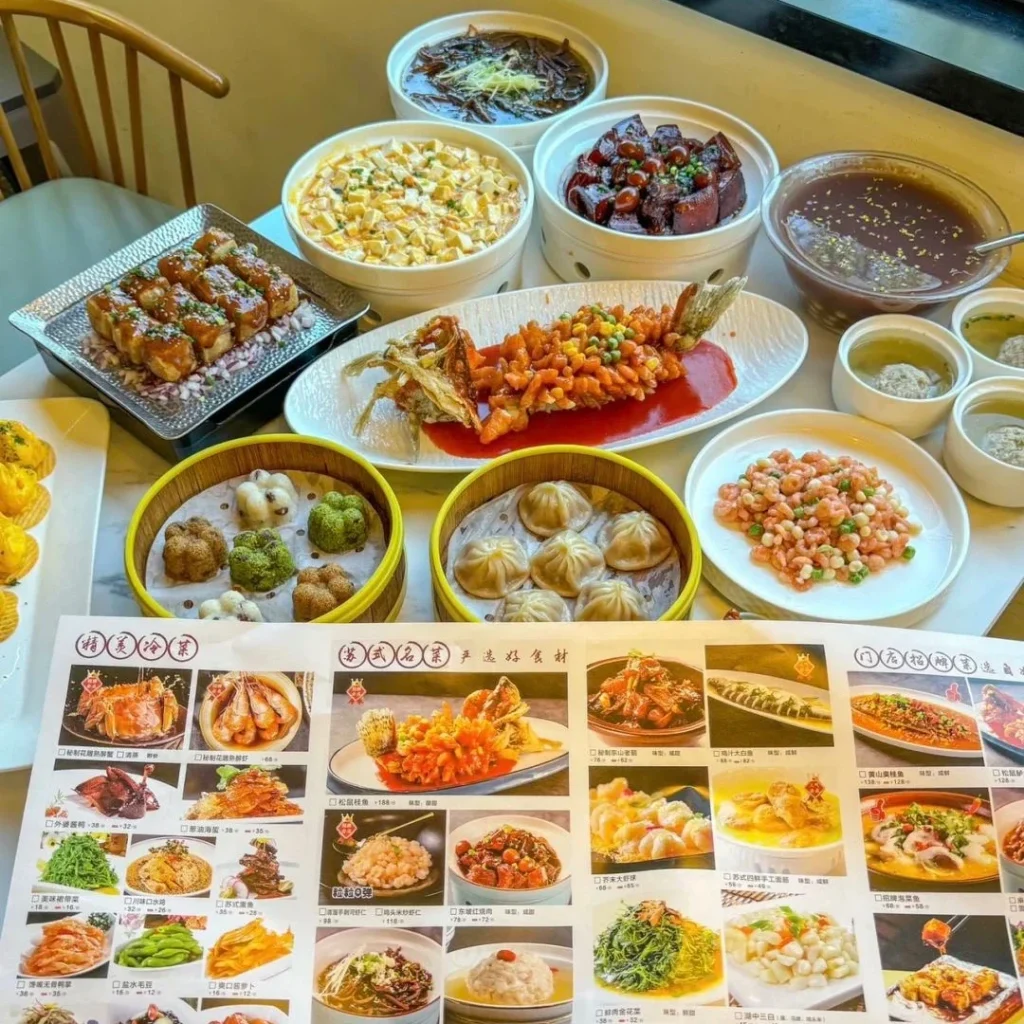 Signature dishes include Jinling Roast Duck, Squirrel Mandarin Fish, and Salted Duck, all showcasing Jiangsu’s emphasis on elegance, taste, and artistry.