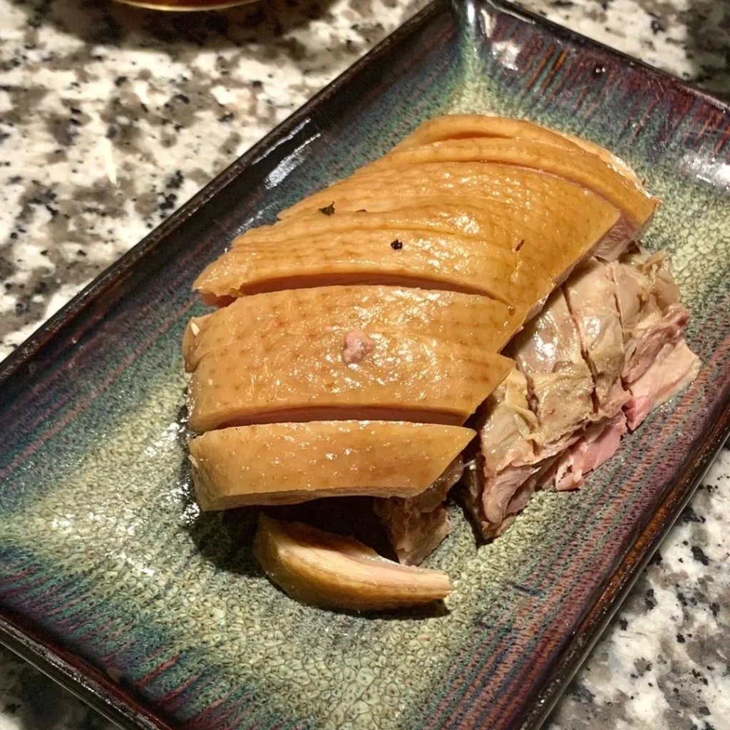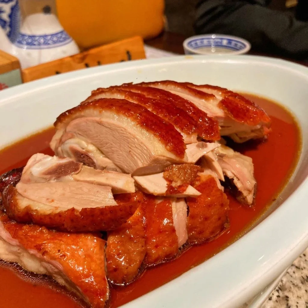 Nanjing’s roast duck, renowned for its crispy skin and tender meat, with a slightly sweet, sour sauce.