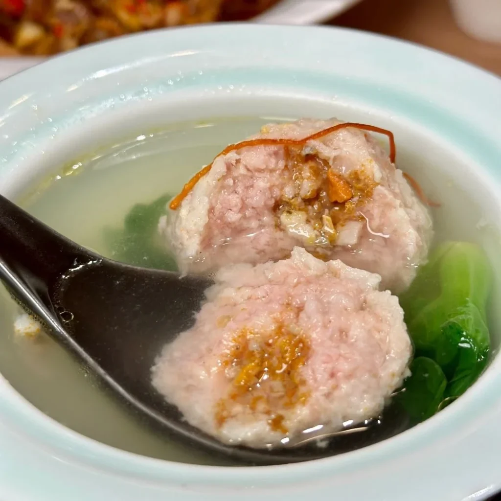 A traditional dish from Yangzhou, featuring tender meatballs infused with crab, offering nourishing and balanced flavors.