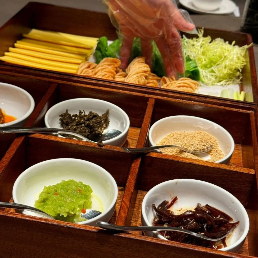 Dish serving follows a structured order, often starting with whole fish or poultry to symbolize abundance.