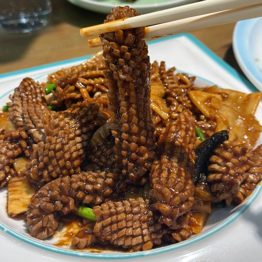 A savory stir-fried dish made with pork kidneys, known for its tender texture and robust flavors.
